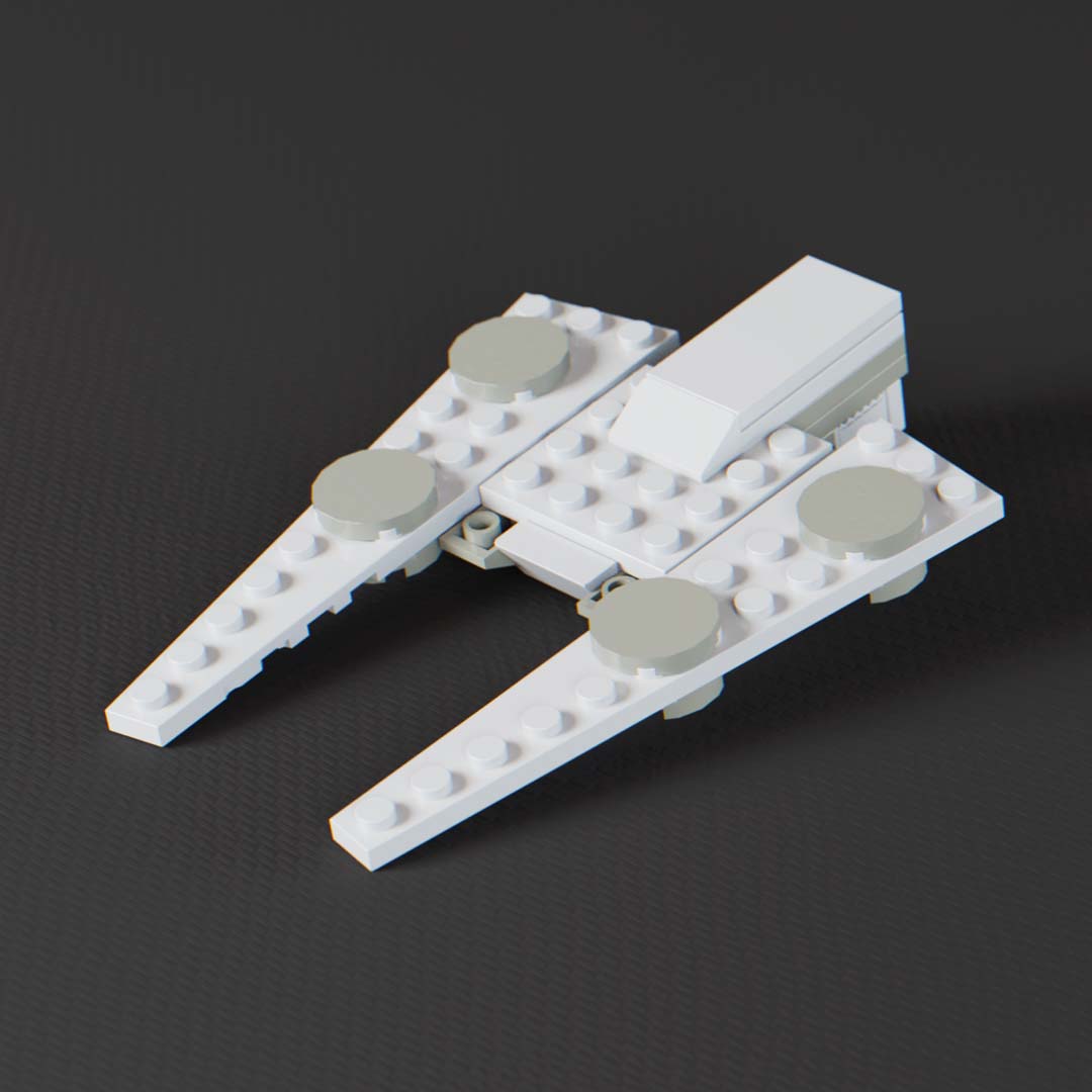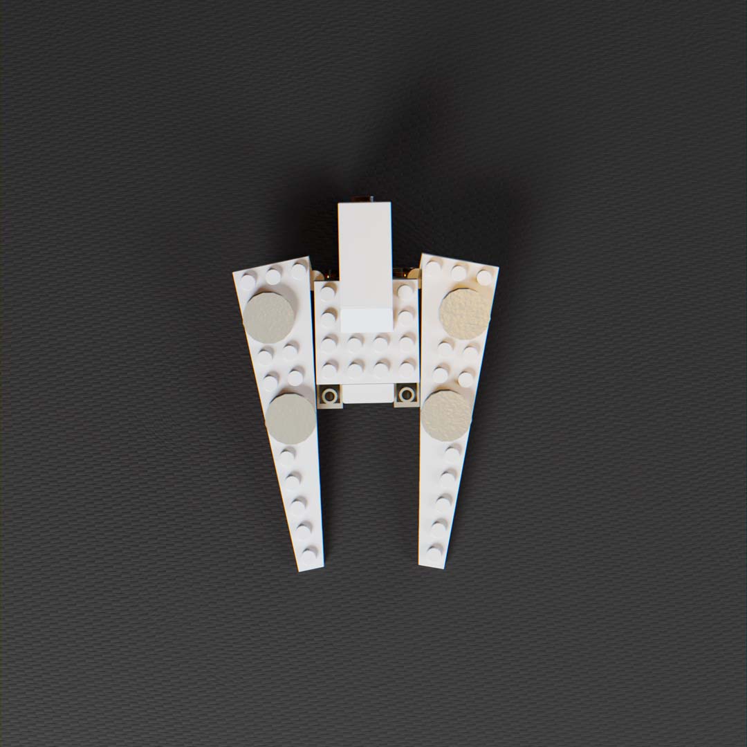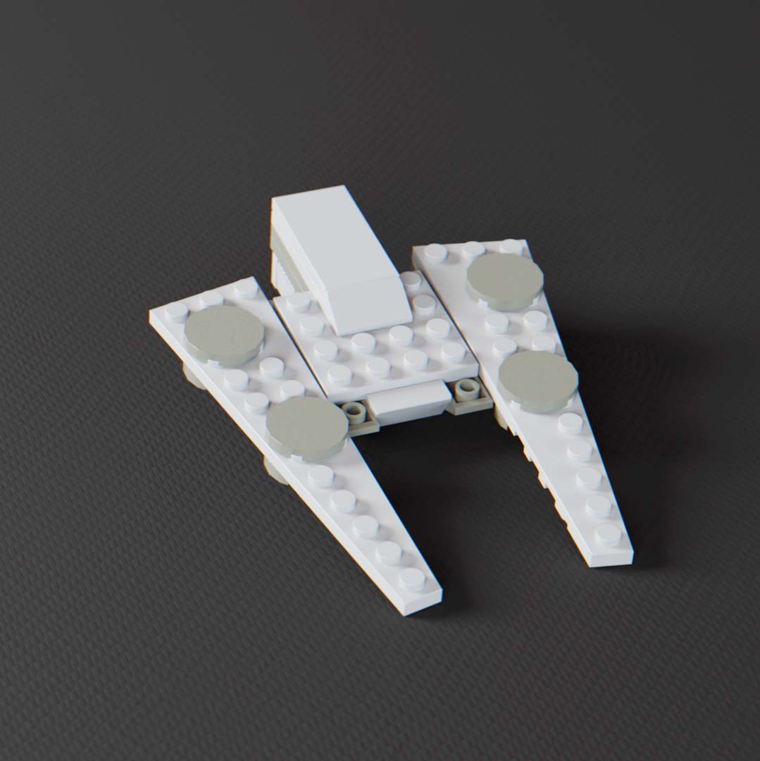 This build is based off of the Dropship in Nebula Heist, but in miniature scale. It features four round areas on its wings to represent the opening and closing turbines, the boat shaped body and accurately placed windscreen elements, an extended rear unit with three rocket boosters for intergalactic propulsion and the two folding wings. Just like in Nebula Heist, these wings can go into a compact folded position for space travel but also fold open, allowing the ship to function as an airplane on a planet’s surface.