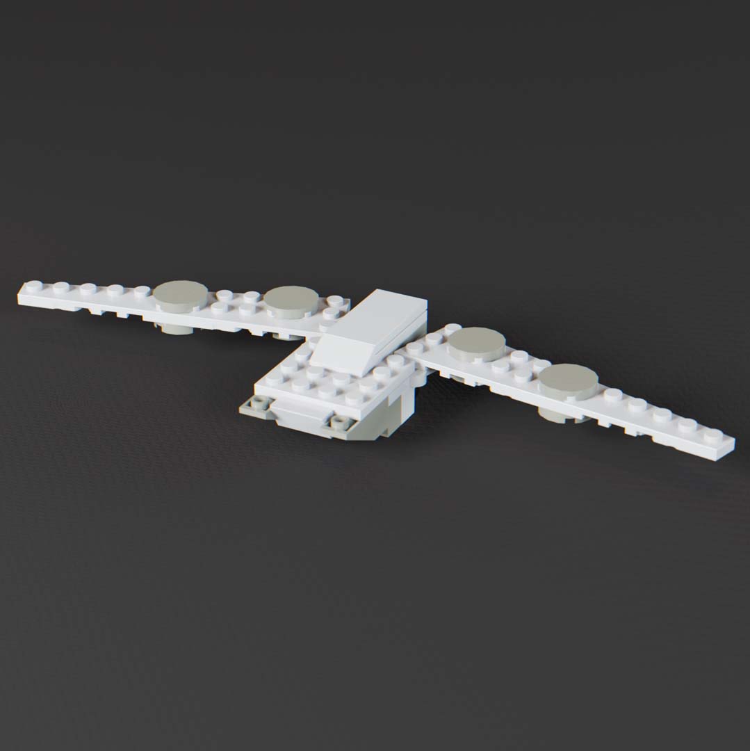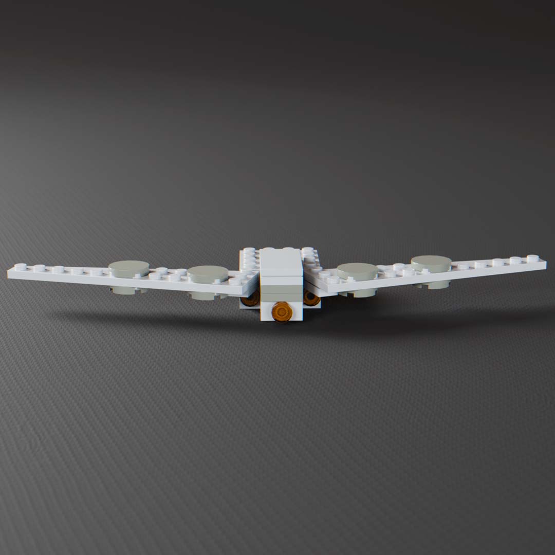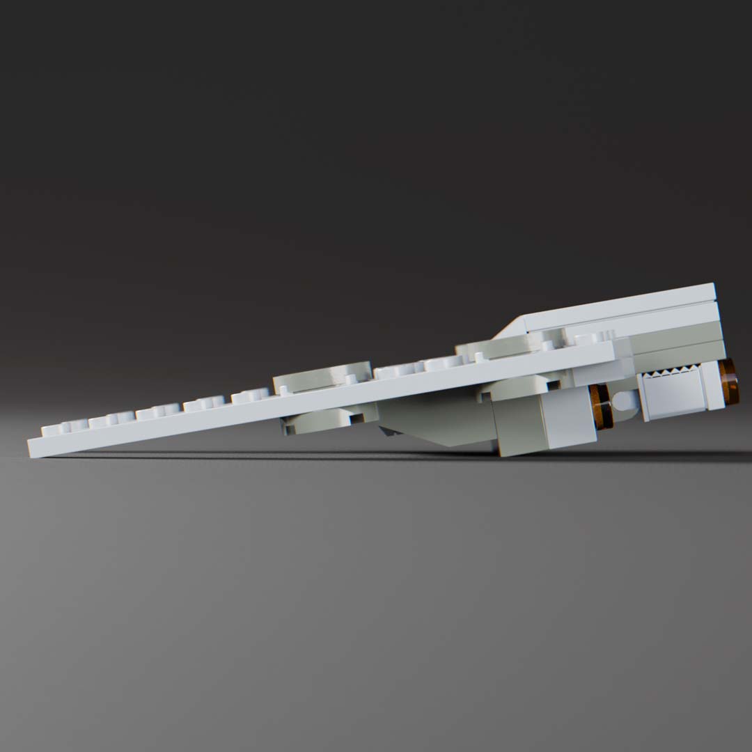 This build is based off of the Dropship in Nebula Heist, but in miniature scale. It features four round areas on its wings to represent the opening and closing turbines, the boat shaped body and accurately placed windscreen elements, an extended rear unit with three rocket boosters for intergalactic propulsion and the two folding wings. Just like in Nebula Heist, these wings can go into a compact folded position for space travel but also fold open, allowing the ship to function as an airplane on a planet’s surface.